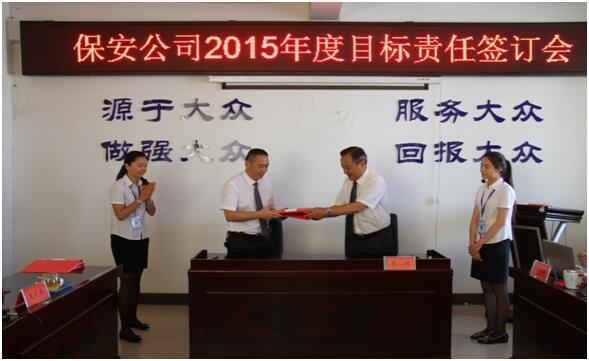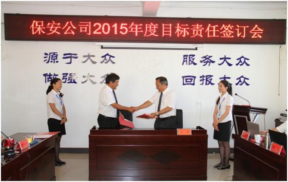 為充分體現(xiàn)目標(biāo)與責(zé)任、目標(biāo)與效益相結(jié)合的管理原則,調(diào)動(dòng)公司全體員工的積極性,保證公司年度目標(biāo)任務(wù)順利實(shí)現(xiàn), 2015年5月29日上午8:30時(shí),大眾保安公司在公司四樓會(huì)議室舉行2015年目標(biāo)責(zé)任書簽訂儀式。儀式由公司行政總監(jiān)主持,公司總經(jīng)理、副總經(jīng)理、各中心總監(jiān),版納分公司、安防分公司、及各縣級(jí)分公司相關(guān)人員共70人出席了簽字儀式。